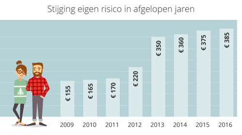 Sommige zorgverzekeraars stunten met een relatief lage premie. Waar ze minder nadruk op leggen, is het hogere eigen risico dat daarbij geldt. Je hebt de keus om, bovenop het wettelijk eigen risico te kiezen voor een vrijwillig extra eigen risico van 500 euro. Maandelijks betaal je daardoor minder voor je zorgverzekering. Wel betaal je dan de eerste 385 + 500 = 885 euro, bijvoorbeeld voor een ziekenhuisbehandeling, zelf.