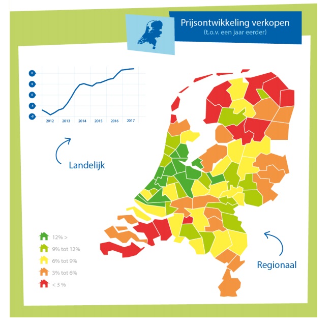 De gemiddelde prijs van een verkocht huis was het afgelopen kwartaal € 264.000. Een stijging van maar liefst 9,7 procent ten opzichte van hetzelfde kwartaal een jaar eerder. Als koper had je veel concurrentie van andere geïnteresseerden. Samen met het geringe aanbod zorgt dit voor beperkte onderhandelingsruimte. Sterker nog, bijna een kwart van de huizen wordt boven de vraagprijs verkocht.