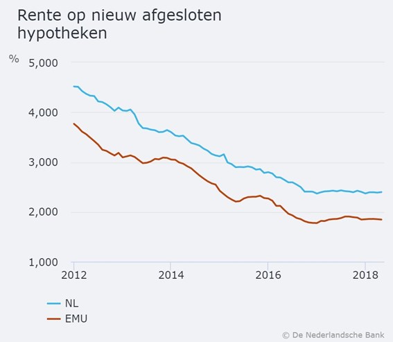 In Nederland is de hypotheekrente relatief hoog, vergeleken met het gemiddelde binnen de Economische en Monetaire Unie (EMU). Inwoners van Finland zijn met gemiddelde 0,87 procent het best af. Ieren betalen de hoofdprijs, daar is de gemiddelde hypotheekrente 3,11 procent. Het verschil is deels verklaarbaar doordat Finnen vaker kiezen voor een korte rentevaste periode. Ierse banken hebben de crisis nog vers in het geheugen en hanteren een hogere winstmarge.