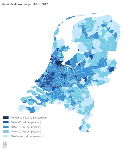 Gemiddeld heeft een Nederlander 75 vierkante meter woonoppervlakte. De verschillen tussen regio’s zijn groot. Voor ruim moet je niet in de Randstad zijn. Amsterdam spant de kroon met ‘slechts’ 48,8 vierkante meter woonoppervlakte. Meer dan het dubbele aan ruimte hebben inwoners van De Marne, een plaats in het puntje van Groningen.