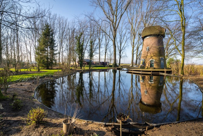 Midden in de bossen aan het water van riviertje De Vycie ligt deze monumentale ronde stenen poldermolen op een perceel van 46020 m². De molen is een aantal jaren geleden verbouwd als woonhuis en wordt omgeven door water. Dichtbij de molen staat nog een bijgebouw inclusief alle voorzieningen en in het bos bevindt zich nog een oud gemaaltje (atelier) en een voormalige paardenstal.