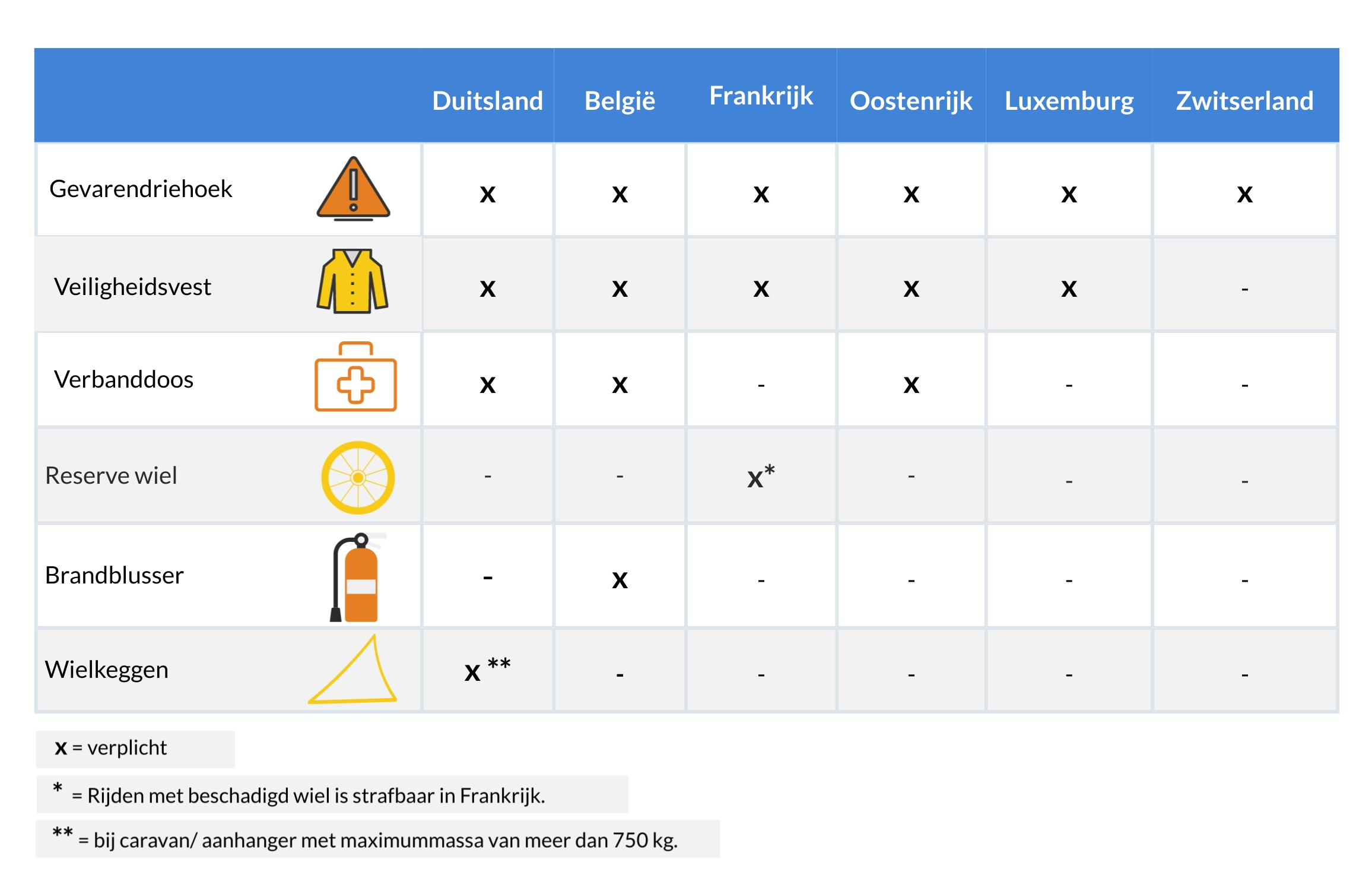 In het buitenland heb je bepaalde dingen verplicht nodig in je auto. Heb je die niet, dan kun je een boete riskeren. Dit heb je verplicht nodig in de volgende landen: