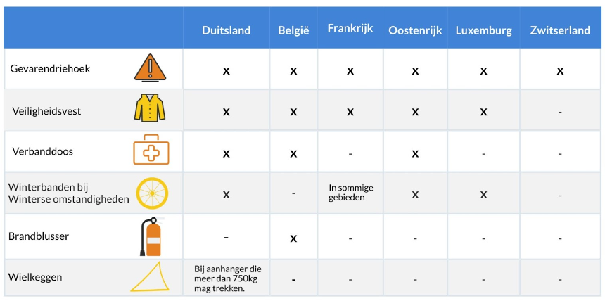 Hoewel Covid-19 intussen naar de achtergrond verdwijnt, valt een opleving niet uit te sluiten. Kijk voor vertrek welke coronaregels er gelden op de plek van bestemming. Vergeet daarnaast niet dat je jouw auto voldoende uitrust. Zo ben je in het buitenland verplicht om bepaalde zaken in de auto te hebben. Dit heb je nodig in de volgende landen: