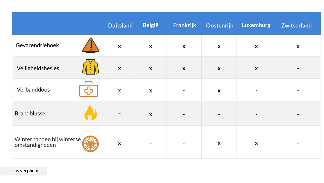 Check voordat je op vakantie gaat of de dekking past bij je situatie en controleer meteen of je de vereiste spullen in de auto hebt liggen.