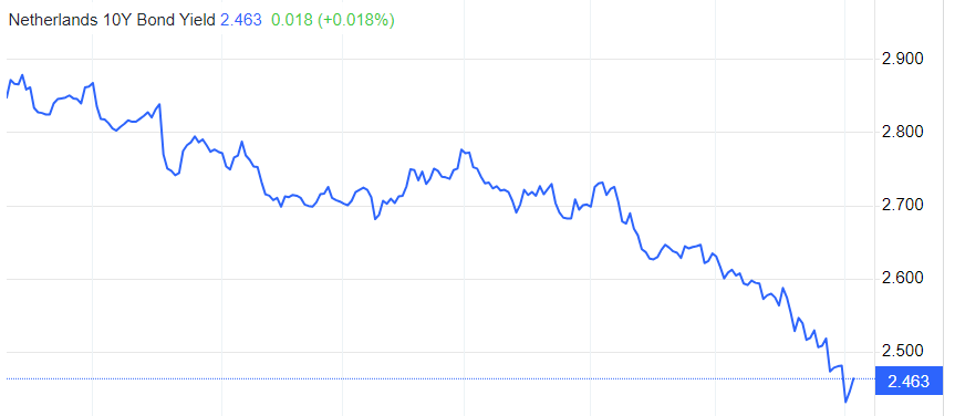 Verloop rente staatsobligaties (10 jaar) afgelopen 6 maanden